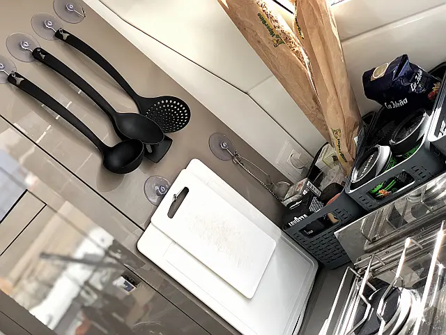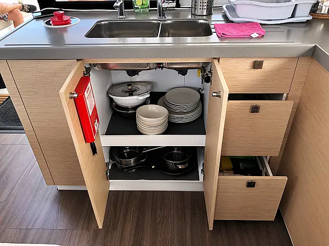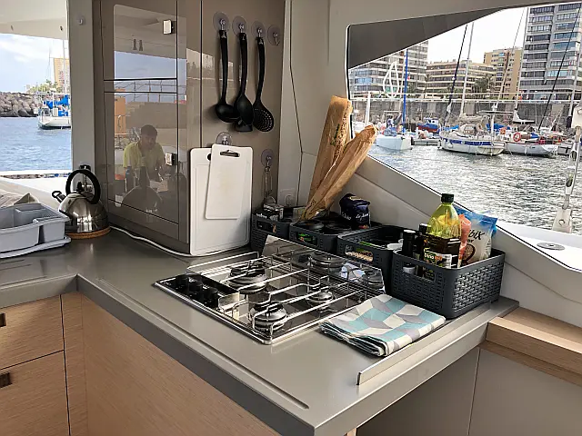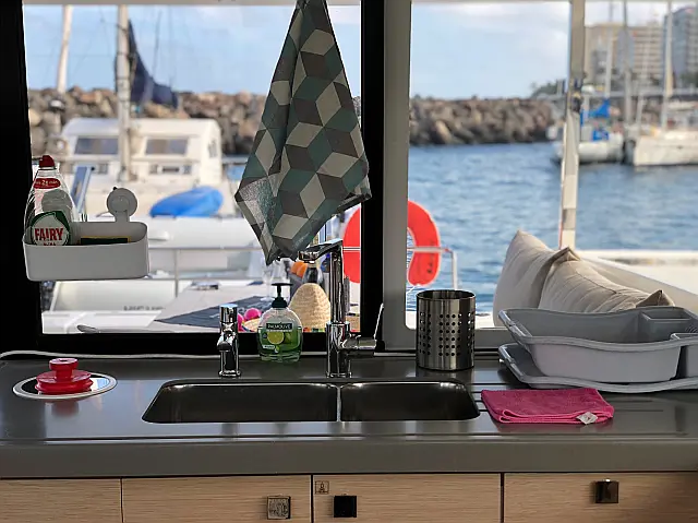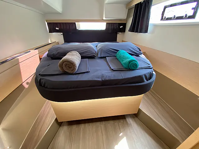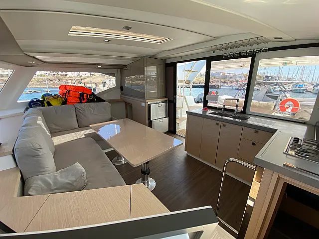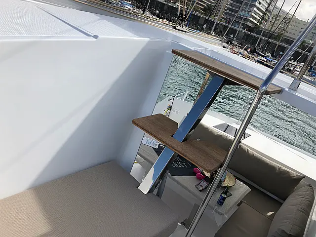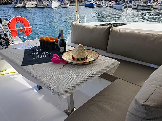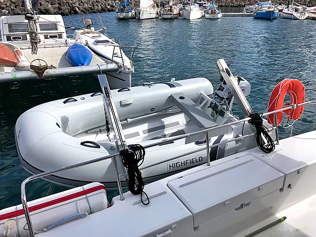 | Equipment: | Binoculars, Fenders (8), Tool box, Kitchen equipment, Bosuns chair, Winch handles, First aid, Inverter 220V (true), Gas bottle (2), Dinghy, Shore power cable, Life jackets, Autopilot, Cockpit cushions, Wind station, Cockpit shower, Bimini, Lazy bag, Furling genoa, VHF, Compass, Fire extinguishers, Liferaft, Mooring lines, Swimming ladder, Full batten mainsail, Windlass+remote (true), Solar panels, GPS in cockpit (true), Soft night lights arround, |
