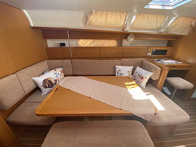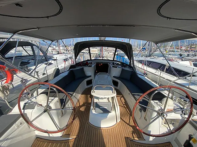 | Equipment: | Bimini, Furling genoa, Gangway, Electric windlass, GPS Chartplotter, Autopilot, Wind Speed direction, VHF-phone, Refrigerator (true), Shore power 220V with battery charger, Cockpit table, Cockpit cushions, CD-MP3 payer with iPod Aux in, Cockpit loudspeakers, Inverter, Dinghy with oars, Hot water, Swimming platform with shower, LPG bottles (2), BayExpress, Harbour guide and Turkish waters pilot, Bow thruster, Sprayhood, Chartplotter at helmstation, MP3, |