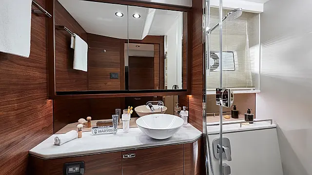 | Equipment: | Air condition, Autopilot, Bathing platform, BBQ/ Grill, Bimini, Bow thruster, Cooker/ Stove, Dinghy, Dishwasher, DVD Player, Fishing set, Freezer, Generator, Heater, Ice maker, Inside cockpit speakers, Inverter, Kitchen utensils, LCD TV, Nespresso Coffee machine, Outside deck speakers, Outside GPS plotter, Outside shower, Oven, Pillows and blankets, Radar, Radio CD / MP3 player / Audio system, Refrigerator, Shower, Sink, Snorkel sets, Solar panels, Towels, Washing machine, Watermaker, |