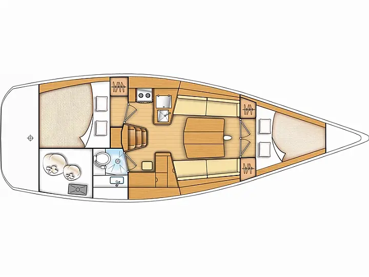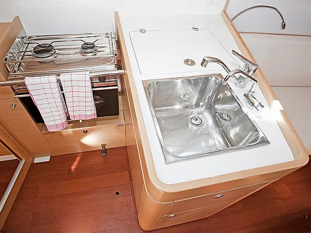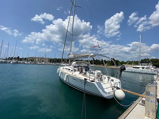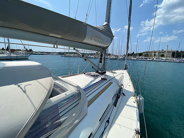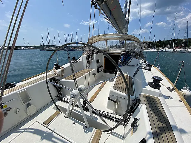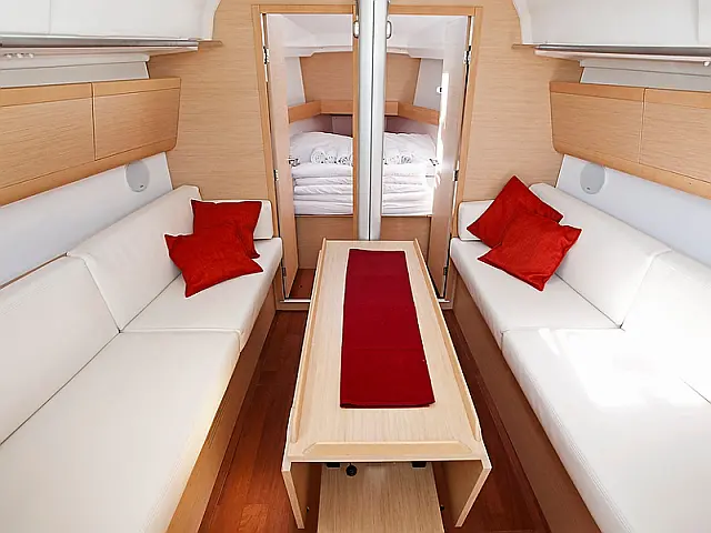 | Equipment: | Autopilot (true), Bimini (true), Chart plotter (true), Cockpit cushions, Cockpit speakers, Complete kitchen equipment, Complete safety equipment (true), Dinghy, Heating, Lazy bag, Radio-CD player, Refrigerator (true), Sprayhood (true), Wi-Fi (true), |