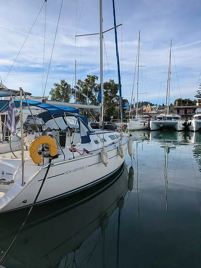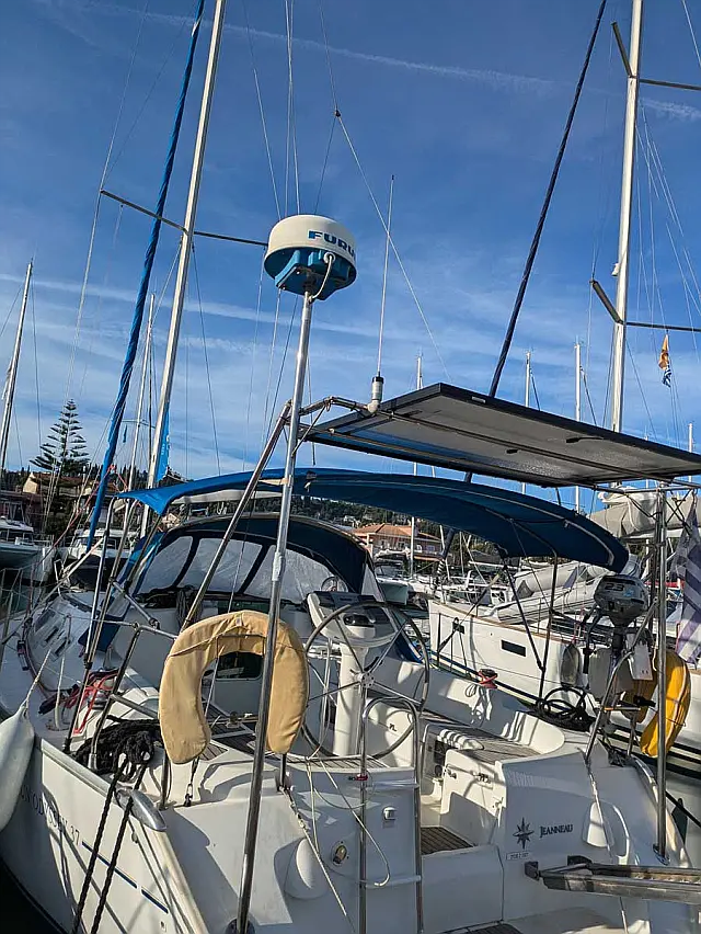 | Equipment: | Bimini, Autopilot, Depth sounder, Dinghy, Cockpit table, Solar panels, Electric windlass, GPS, Hot water, Sprayhood, 220V Outlets from Shorepower or Inverter, Chart plotter, Outboard, Refrigerator, VHF radio, Radar, Deck shower, Bathing ladder, |