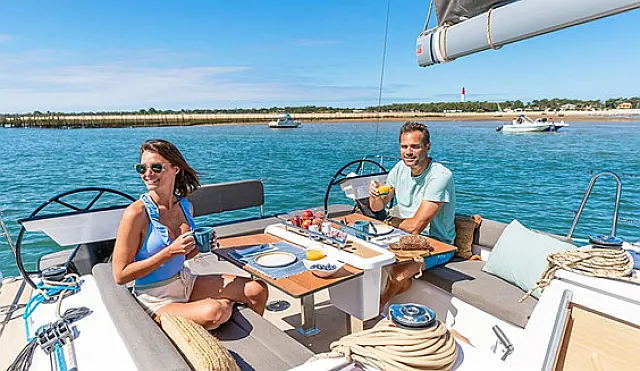 | Equipment: | VHF, Freezer, Liferaft, Life jackets, Solar Panel, Outboard engine, Safety equipment, Audio System, Fridge, Electric Windlass, Fire extinguisher, Dinghy, Inverter, Electric Toilet, Autopilot, Battery Charger, Sprayhood, Bimini, Salon table, USB port, |