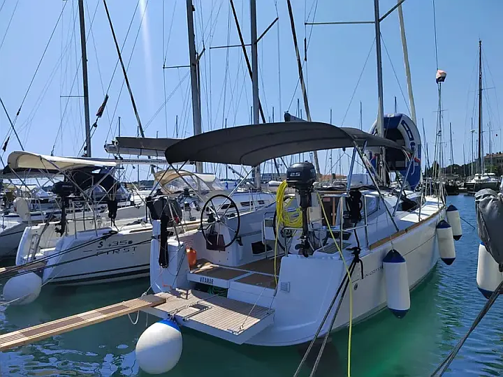 Equipment: | Autopilot (Ture), Bimini (True), Bow thruster, Chart plotter (true), Cockpit cushions, Cockpit speakers, Complete kitchen equipment, Complete safety equipment (true), Dinghy, GPS with chart plotter (True), Heating, Holding tank, Outside steering position, Radio-CD player, Refrigerator (true), Sprayhood (True), Swimming platform (true), Teak Cockpit, Wi-Fi (True), |