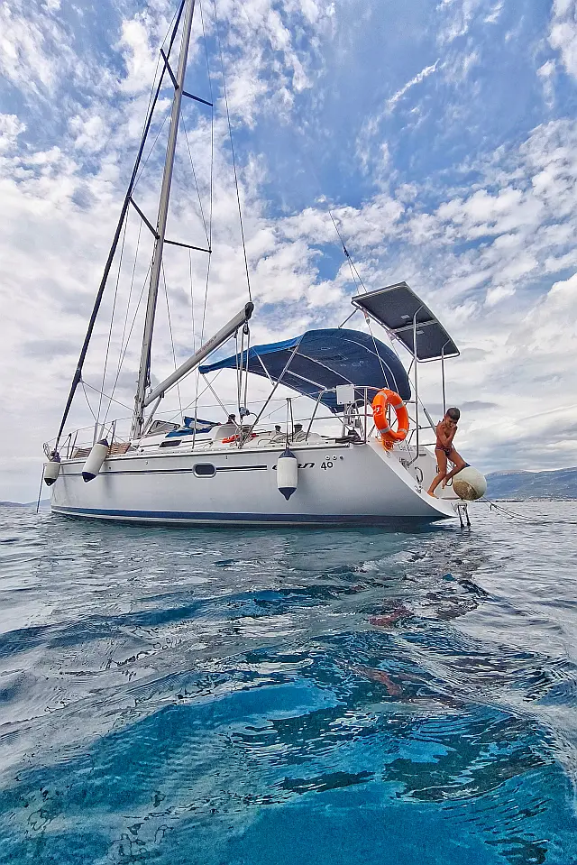 | Equipment: | Autopilot, VHF, Depth Gauge, GPS Chartplotter, Radio/CD, Hot Water System, Bimini, Deck Shower, Bathing platform, Refrigerator, Cooker with oven, Shore power connection, Solar panel, Dinghy Inflatable, Snorkel equipment, Fishing tackle, Safety harness, Fire extinguisher, Main anchor, First aid kit, Distress flares, |